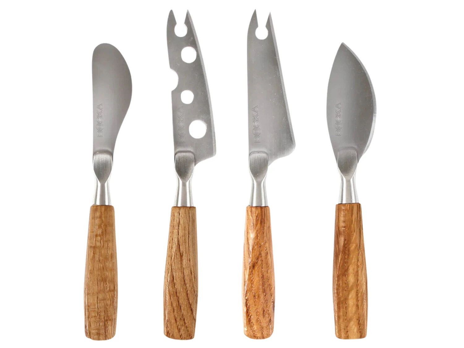 Deze kaasmessenset is geschikt voor alle soorten kaas. De kaasmessen zijn gemaakt van eikenhout en RVS. Deze set bestaat uit een presenteermes, smeermes, kaasmes cheesy en parmesan mes. De Boska Kaasmessenset Mini Oslo kan eenvoudig met de hand gereinigd worden.
