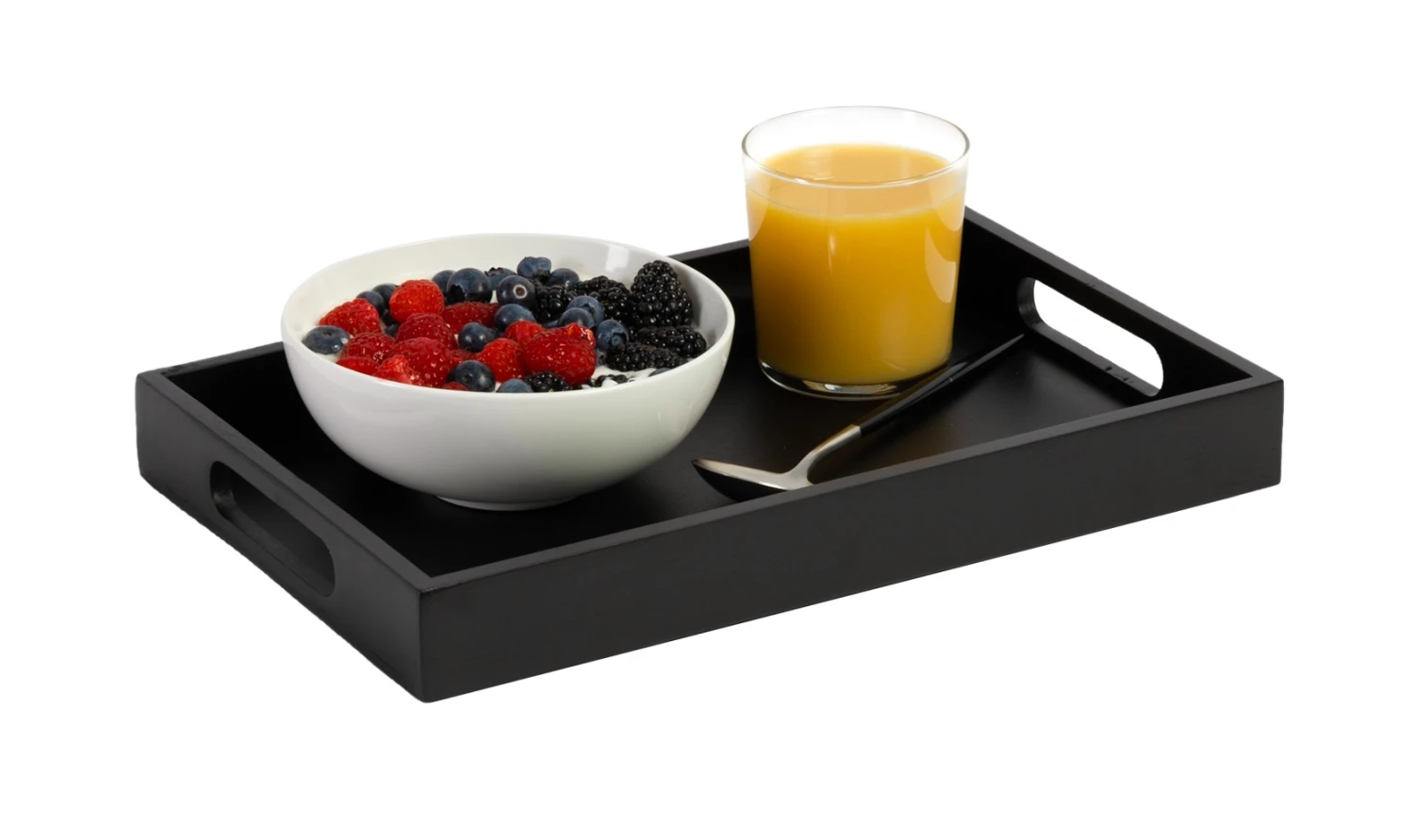 Met het Jay Hill dienblad geniet je lekker van je ontbijtje op bed. Het dienblad heeft een afmeting van 35 x 22 cm en is daarmee geschikt voor één persoon. Het dienblad is gemakkelijk te tillen door de opstaande randen met opening. Het dienblad is ook te gebruiken als decoratie, om bijvoorbeeld een aantal kaarsen op te zetten.