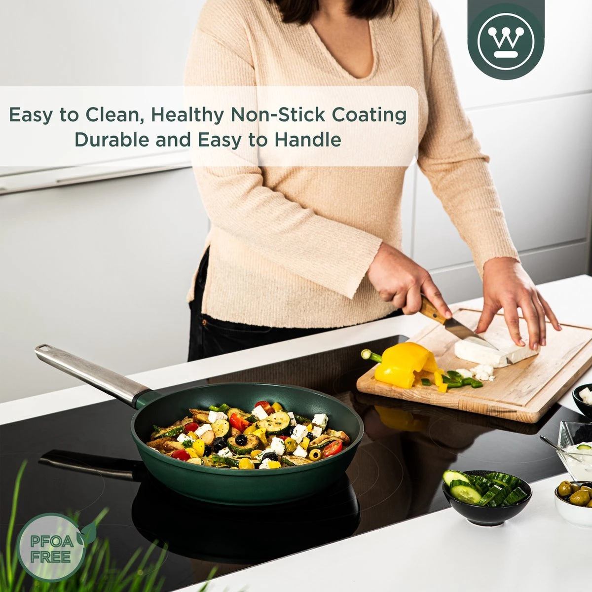 Koken en bakken moet niet alleen leuk en smakelijk zijn, het moet ook veilig gebeuren. De pannen van Westinghouse zijn van hoogwaardige kwaliteit. Deze pannen van de Westinghouse Performance collectie zijn lichtgewicht, hebben een uitstekende warmtegeleiding, bevatten een antiaanbaklaag die PFOA- en PTFE-vrij is en zijn makkelijk schoon te maken in de vaatwasser.